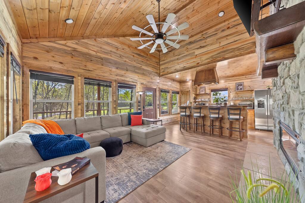 ⭑Primary Bedroom: Come On Baby Light My Fire⭑ ✔ Spacious and romantic ambiance, perfect for couples ✔ Luxurious bed linens, extra pillows, and blankets for ultimate comfort ✔ Clothing storage and hangers ✔ 65" Smart TV above the mantle ⭑Living Room:⭑ ✔ Cozy living space with a 65" Smart TV for your streaming pleasure ✔ Vent-free propane gas indoor fireplace for a warm, intimate setting ✔ 65" Smart TV above the mantle ⭑Kitchen & Dining Area:⭑ ✔ Fully equipped kitchen with stainless steel appliances: LP propane gas 5-burner cooktop range, fridge, microwave, and dishwasher (dishwasher pods provided) ✔ Cooking basics, dinnerware, and silverware included ✔ Keurig/coffee machine combo and wine glasses for a relaxing experience ✔ Grill accessories, utensils, and marshmallow/hot dog skewers located in kitchen drawer ⭑Bathrooms:⭑ ✔ Hotel-quality towels & linens, toilet paper, hand soap, and a starter kit of body wash, shampoo & conditioner ✔ Private toilet area ✔ Spacious walk-in shower with bench seat Laundry: ✔ Full-size stackable washer/dryer (washing pods provided) ⭑Outdoor Space:⭑ ✔ Private area with a fire pit ✔ Year-round hot tub spa for a soothing experience ✔ Outdoor hard piped BBQ grill (no need to bring propane) ✔Outdoor dining table with four chairs on the back porch ✔Outdoor patio set with sofa, 2 side chairs, and a coffee table ✔55" Smart TV on the porch ⭑Safety & Security:⭑ ✔ Exterior security cameras for peace of mind (no cameras face the hot tub) ✔ Smoke alarm, carbon monoxide alarm, and first aid kit provided ✔ Fire extinguishers located in the kitchen left of the sink and on patio right of grill ⭑Entertainment & Connectivity:⭑ ✔ High-speed Wi-Fi and dedicated workspace ✔ 3 Smart TVs ⭑Heating & Cooling:⭑ ✔ Central air conditioning and heating ✔ Ceiling fans for added comfort ⭑Parking & Accessibility:⭑ ✔ Free driveway parking for up to 4 vehicles ✔ Single-level home with no stairs — easy accessibility ✔ Several steps to the porch ✔ Boat parking available ⭑Services and Experiences⭑ ✔ NEW: Add-on services available - From a romantic dinner prepared by a private chef to a local in-cabin massage therapy ✔ Short distance from trails, wineries, and Hochatown's new Airbnb Experiences ✔ Schlage Encode Keypad Self check-in for convenience ⭑CONTACT US FOR SEASONAL DISCOUNTS⭑ Your stay at Come On Baby Light My Fire promises unforgettable comfort, modern convenience, and an atmosphere designed to spark connection. This luxurious creek-side escape is sure to be one of our most popular retreats. Book now and let the flames of romance and cherished memories run wild at Come On Baby Light My Fire. Booking with Tree Frog Getaways means securing more than just a place to stay. You’re choosing a five-star experience managed by one of the top-performing management teams in the industry. Some of our cabins rank among the top 5% on Airbnb. All of our cabins are ranked among guest favorites that are celebrated for their thoughtful details, premium amenities, and spotless presentation. Availability is limited, so reserve your dates today.