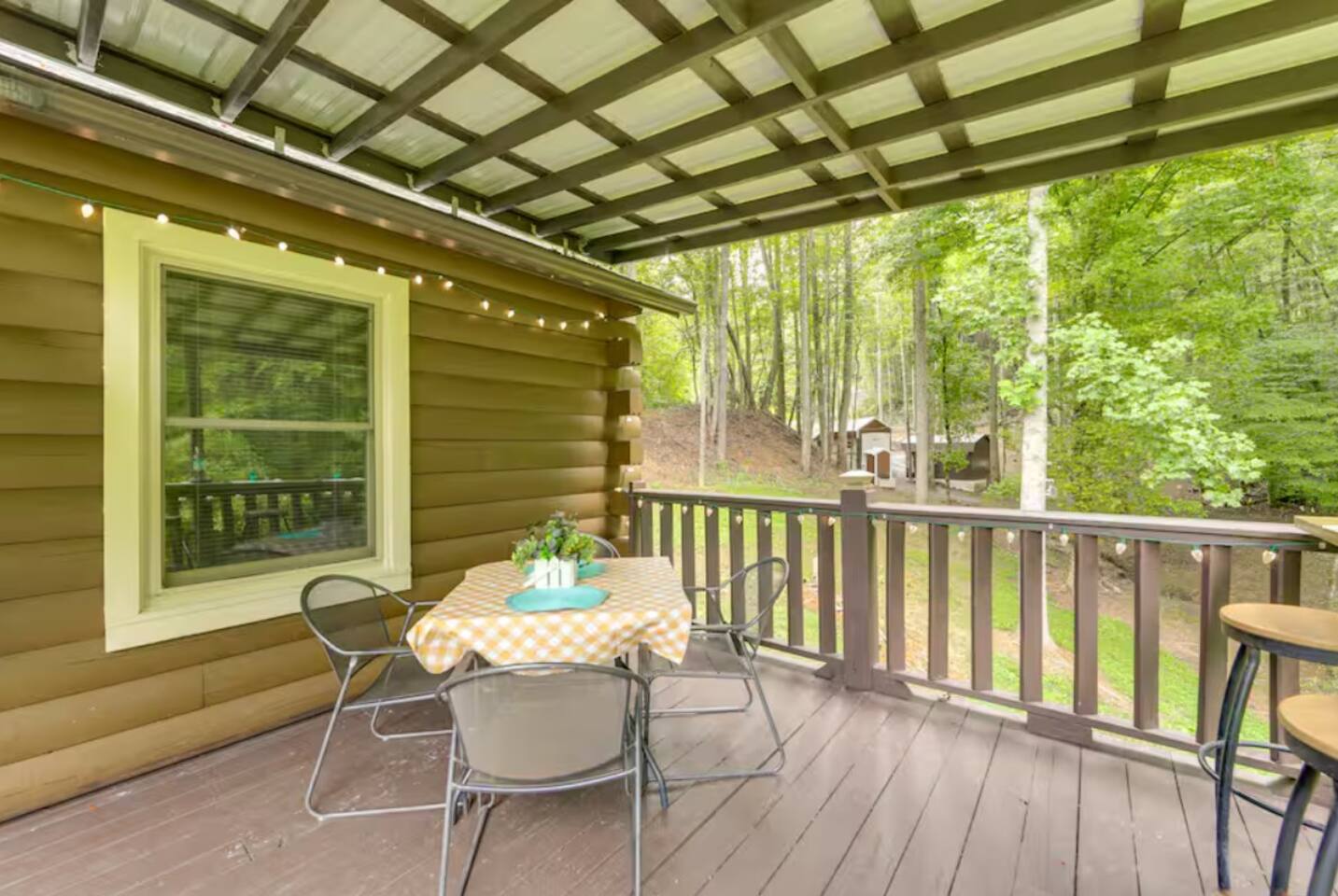 *FEATURES DESCRIPTIONS:* Age Requirement • All guests must be 21 with the exception of children with their parents. Trash Policy • For the safety of our wildlife, please avoid leaving food or trash outside the cabin. We provide a steel box that must be locked at all times. *PET POLICY:* To ensure the cleanliness, safety, and comfort of all our guests, absolutely no pets or animals of any kind are allowed on the property at any time — including service animals fraudulently claimed where not legally applicable. This policy applies to, but is not limited to: • Dogs • Cats • Turtles • Gerbils • Hamsters • Snakes • Alligators • Ferrets • Birds • Exotic animals • Emotional support animals (ESAs are not classified as service animals under federal law and are not exempt from this policy) Violation of this rule will result in a fine of $300 per animal and may also lead to immediate removal from the property without refund. Additional cleaning, damage, or pest control fees may also be assessed depending on the condition in which the property is left. We have implemented this policy to protect future guests who may have severe allergies or health sensitivities and to preserve the condition of the home. We kindly ask that you respect this rule as part of our community standards. *PROPERTY RULES & INFORMATION:* Outdoor Cameras • For your safety and security, exterior cameras are installed. They monitor outdoor areas only and do not invade the privacy of the back porch. Noise Ordinance • Please be mindful of the noise levels to ensure a peaceful stay for all guests. Maximum Occupancy • Maximum occupancy: 6 guests, including daytime visitors. Exceeding this limit will result in a $200 fine per guest and may lead to cancellation without refund. This rule helps us maintain safety, comply with local guidelines, and protect the home. *PLEASE NOTE:* • NO SMOKING • NO PARTIES • We can host a maximum of 6 guests (including all adults, children & infants)- for safety (fire & insurance) reasons, we cannot hold any additional guests. • All amenities including outdoor furniture, wifi, etc are fully inspected prior to every check-in, however, we cannot guarantee their working condition during stays. • We look forward to hosting all of our upcoming guests. Our cleaning team is going above and beyond to provide top-notch services, with special attention given to high-touch areas. We use commercial-grade antimicrobial agents and ensure that bed sheets and bath towels are professionally laundered between each guest stay. • However, it's important to note that we cannot guarantee that our properties are 'completely sterile' or 'COVID-free,' just as no other business can reasonably make that claim. Guests are advised to travel and stay with us at their own discretion. • We do not offer rescheduled stays or refunds for cancellations outside of the platform's extenuating circumstances policy. We strongly encourage you to purchase travel insurance at the time of booking if you are concerned about the possibility of canceling your trip last minute. Travel insurance is affordable and provides excellent protection against unforeseen cancellations. • We understand that last-minute cancellations can be challenging for guests who choose not to purchase travel insurance. However, we must uphold our owners' cancellation policies to protect their primary source of income and maintain their properties in business. Please book responsibly, and we appreciate your understanding. • Any noise complaints or law enforcement calls to the home will result in immediate termination of your stay without a refund. • Follow us at @treefroggetaways for more updates.