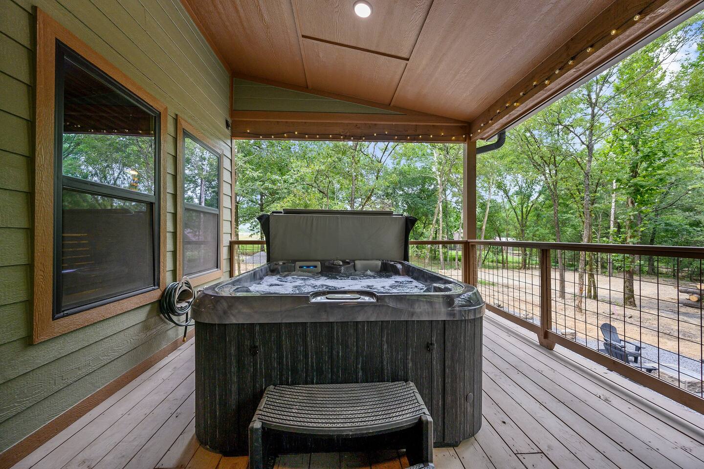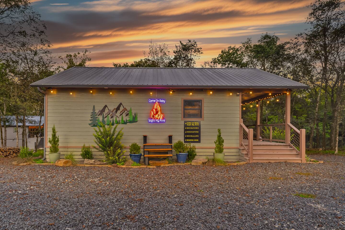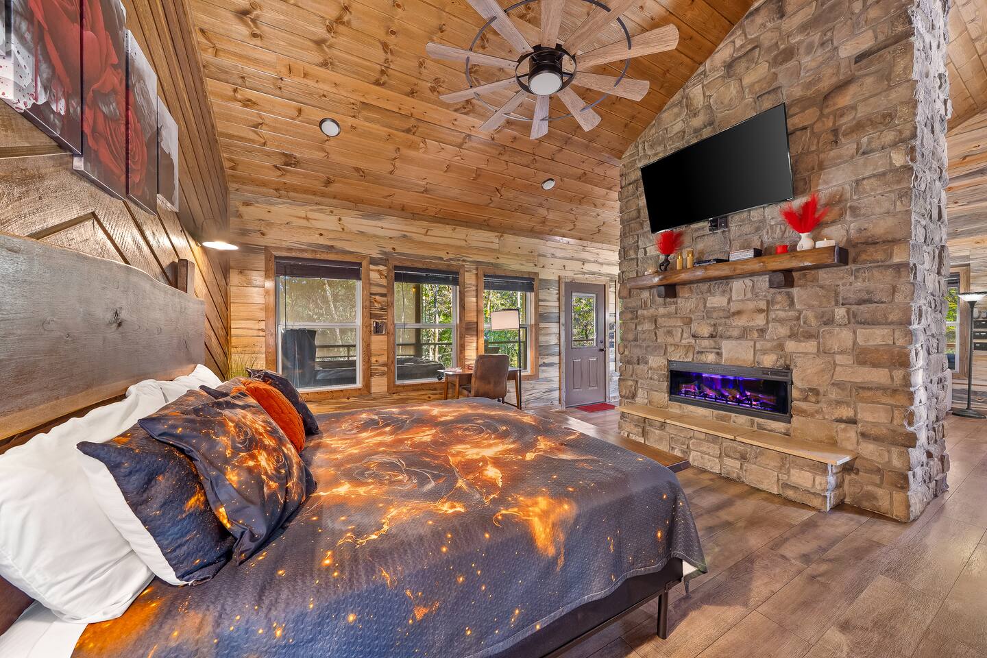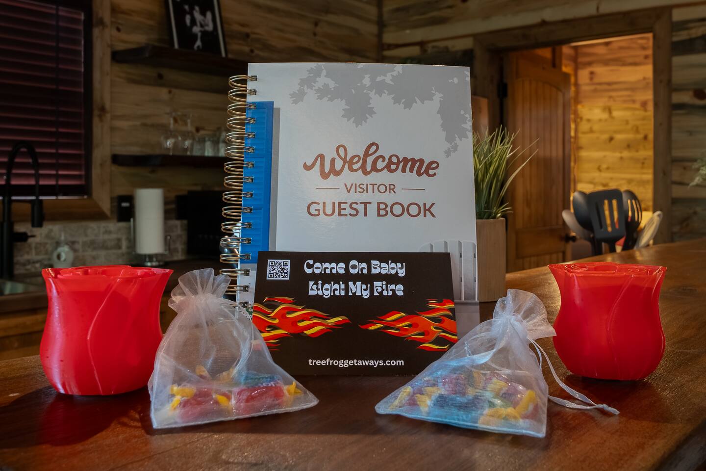 ⭑Primary Bedroom: Come On Baby Light My Fire⭑ ✔ Spacious and romantic ambiance, perfect for couples ✔ Luxurious bed linens, extra pillows, and blankets for ultimate comfort ✔ Clothing storage and hangers ✔ 65" Smart TV above the mantle ⭑Living Room:⭑ ✔ Cozy living space with a 65" Smart TV for your streaming pleasure ✔ Vent-free propane gas indoor fireplace for a warm, intimate setting ✔ 65" Smart TV above the mantle ⭑Kitchen & Dining Area:⭑ ✔ Fully equipped kitchen with stainless steel appliances: LP propane gas 5-burner cooktop range, fridge, microwave, and dishwasher (dishwasher pods provided) ✔ Cooking basics, dinnerware, and silverware included ✔ Keurig/coffee machine combo and wine glasses for a relaxing experience ✔ Grill accessories, utensils, and marshmallow/hot dog skewers located in kitchen drawer ⭑Bathrooms:⭑ ✔ Hotel-quality towels & linens, toilet paper, hand soap, and a starter kit of body wash, shampoo & conditioner ✔ Private toilet area ✔ Spacious walk-in shower with bench seat Laundry: ✔ Full-size stackable washer/dryer (washing pods provided) ⭑Outdoor Space:⭑ ✔ Private area with a fire pit ✔ Year-round hot tub spa for a soothing experience ✔ Outdoor hard piped BBQ grill (no need to bring propane) ✔Outdoor dining table with four chairs on the back porch ✔Outdoor patio set with sofa, 2 side chairs, and a coffee table ✔55" Smart TV on the porch ⭑Safety & Security:⭑ ✔ Exterior security cameras for peace of mind (no cameras face the hot tub) ✔ Smoke alarm, carbon monoxide alarm, and first aid kit provided ✔ Fire extinguishers located in the kitchen left of the sink and on patio right of grill ⭑Entertainment & Connectivity:⭑ ✔ High-speed Wi-Fi and dedicated workspace ✔ 3 Smart TVs ⭑Heating & Cooling:⭑ ✔ Central air conditioning and heating ✔ Ceiling fans for added comfort ⭑Parking & Accessibility:⭑ ✔ Free driveway parking for up to 4 vehicles ✔ Single-level home with no stairs — easy accessibility ✔ Several steps to the porch ✔ Boat parking available ⭑Services and Experiences⭑ ✔ NEW: Add-on services available - From a romantic dinner prepared by a private chef to a local in-cabin massage therapy ✔ Short distance from trails, wineries, and Hochatown's new Airbnb Experiences ✔ Schlage Encode Keypad Self check-in for convenience Your stay at Come On Baby Light My Fire promises unforgettable comfort, modern convenience, and an atmosphere designed to spark connection. This luxurious creek-side escape is sure to be one of our most popular retreats. Book now and let the flames of romance and cherished memories run wild at Come On Baby Light My Fire. Booking with Tree Frog Getaways means securing more than just a place to stay. You’re choosing a five-star experience managed by one of the top-performing management teams in the industry. Some of our cabins rank among the top 5% on Airbnb. All of our cabins are ranked among guest favorites that are celebrated for their thoughtful details, premium amenities, and spotless presentation. Availability is limited, so reserve your dates today.