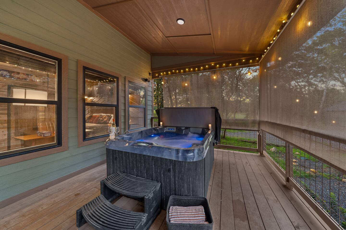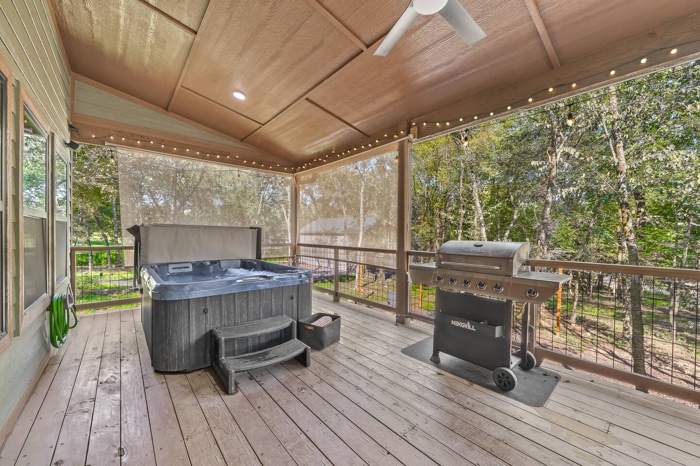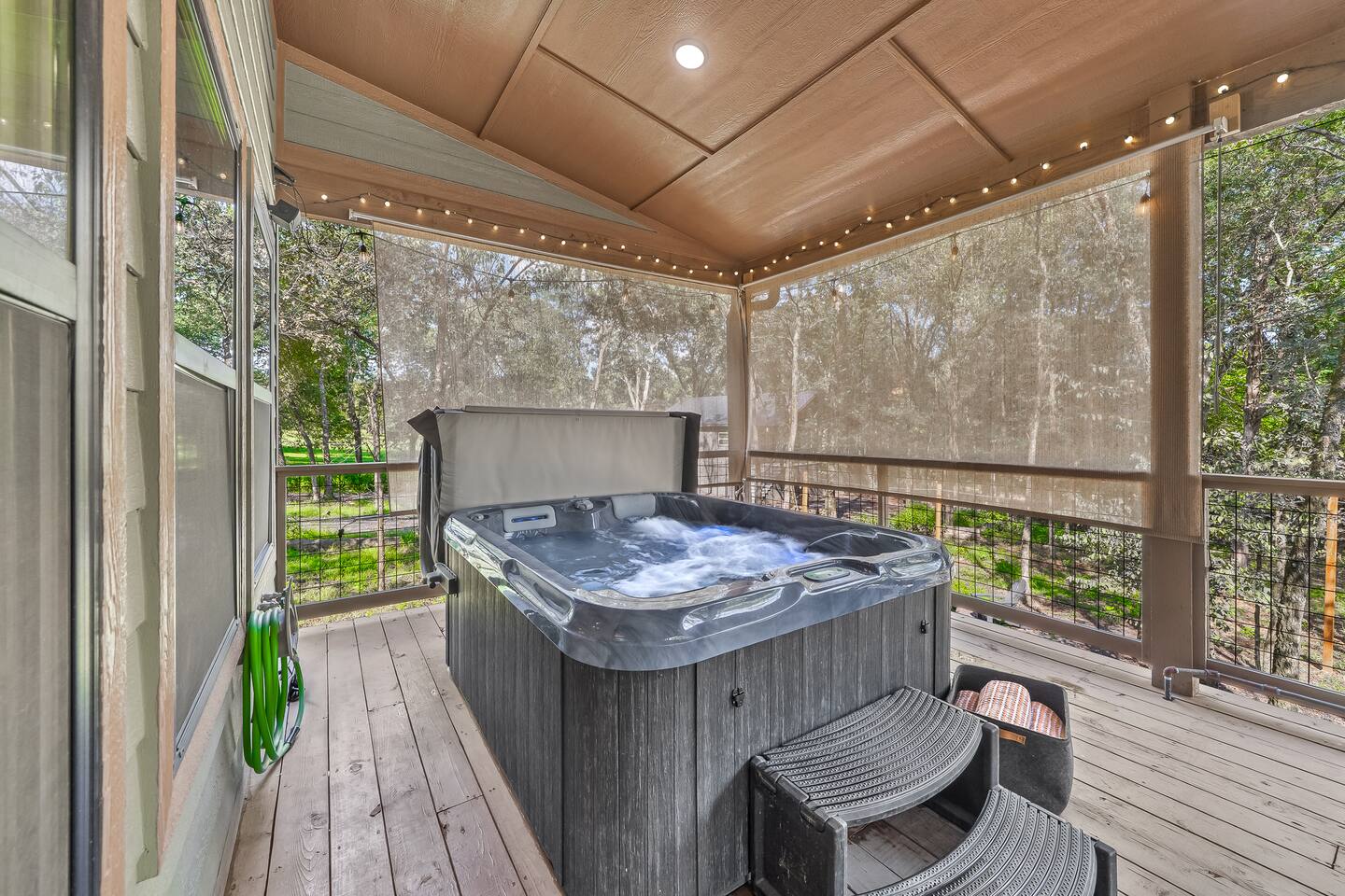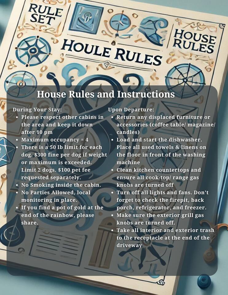 Pet Policy: Guests may bring up to 2 dogs <50 lbs with prior approval. A flat pet fee of $100 applies. If more than 2 dogs are brought without authorization, an additional $300 fee per extra pet will be charged and may result in cancellation without refund. This helps us ensure cleanliness and comfort for all guests. NO CATS, bringing a cat is a $300 fine, and the guest will be charged and may result in cancellation without refund. Accessibility: The cabin is a single-level home with no stairs on the interior, providing easy access throughout the space. It is a single-level home except for the first 6 or 7 steps onto the porch. Outdoor Cameras: For the safety of our guests and the security of the property, exterior security cameras are installed. Each camera is directed at entry points (such as the back door) to monitor for unauthorized access and to help safeguard your belongings. No cameras are directed toward or monitor the hot tub or other private relaxation areas. Please do not tamper with the position of the cameras. Robes are provided for guests to enter and exit the back door modestly. Hot Tub Usage: The hot tub is available all year and open 24 hours for your enjoyment. Maintain water levels above the highest jets. Water levels below the jets will cause the expensive water pump to burn out resulting in charges to the guest for the damages. Please adhere to safety guidelines posted on-site. Local Wildlife: Being nestled in the foothills, occasional wildlife sightings are normal. Please respect the natural environment and keep a safe distance from any animals. Do Not feed any wild animals. Noise Ordinance: Quiet hours are from 10 PM to 7 AM. Please be mindful of the noise levels to ensure a peaceful stay for all guests. Maximum occupancy = 4 guests, including daytime visitors. Exceeding this limit will result in a $200 fine per guest and may lead to cancellation without refund. This rule helps us maintain safety, comply with local guidelines, and protect the home. Deer Sightseeing: You might get a chance to see a deer in the early morning around the property, such a peaceful sight to start the day!