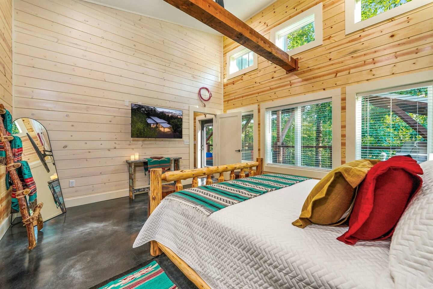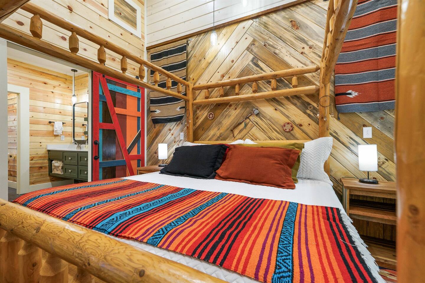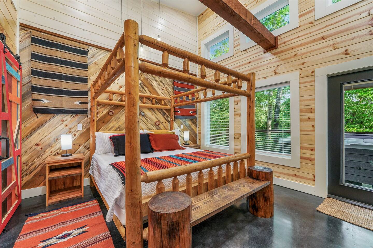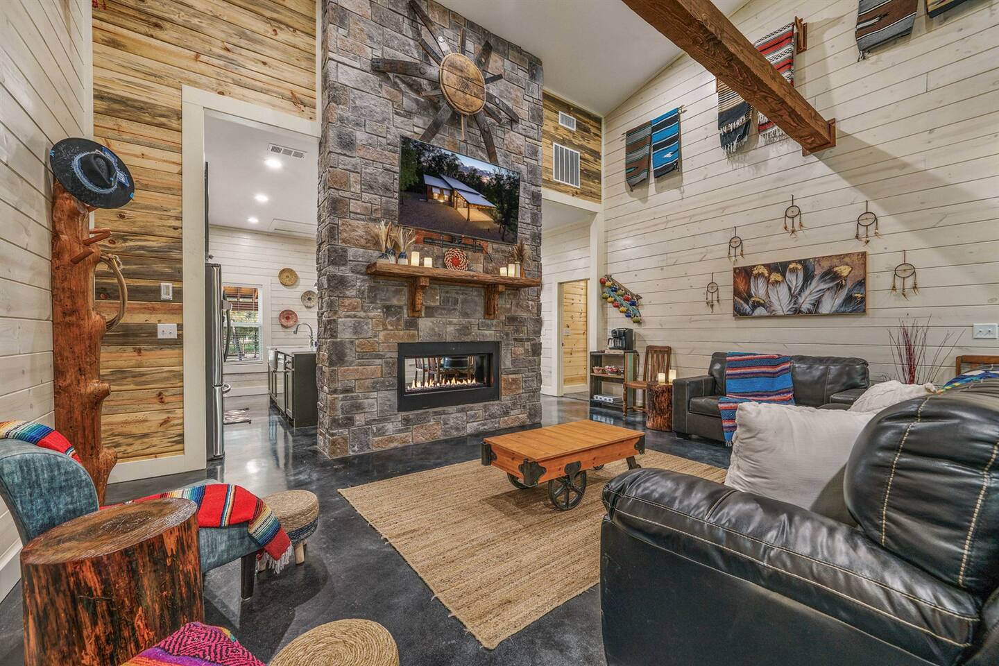 Getting to the Navajo Rug cabin is part of the adventure! You travel from Hwy 259 down cress road. We recommend bringing a vehicle like a pickup or an SUV that has at least 7" clearance, definitely not low to the ground. Be sure to find the directions to the cabin in our Guest Experience Hub in your message portal. Navajo Rug - Sleeps 10 Guests and 2 Dogs < 50 lbs. ⭑Primary Bedroom 1:⭑ Sleeps 2 * Private Room/ Spacious King Bed / Romantic Ambiance, Private Ensuite * Luxurious bed linens, extra pillows, and blankets for ultimate comfort * Clothing storage and hangers ⭑Primary Bedroom 2:⭑ Sleeps 2 * Private Room/ Spacious King Bed / Romantic Ambiance, Private Ensuite * Luxurious bed linens, extra pillows, and blankets for ultimate comfort * Clothing storage and hangers ⭑Living Room:⭑ Sleeps 2 * Full-size Sofa Sleeper * Cozy living space with a 65-inch HDTV stream your favorite service * See-thru Natural Gas indoor Fireplace for a warm, intimate setting *Loft* Sleeps 4 * Two queen-sized Murphy Beds * Pack-n-Play portable crib * Board Games/ Foosball * Balcony overlooking the creek ⭑Kitchen and Dining Area:⭑ * Fully equipped kitchen with a Samsung gas Cooktop and fridge, built-in wall oven, built-in wall microwave, and dishwasher * Combo Keurig/ Carafe Coffee Machine, Mugs & Wine Glasses * Extensive Cookware, Dinnerware and Utensils to serve up to 10 people and more ⭑Common Bathroom/ Laundry:⭑ * Spacious bathroom with a bathtub * Full-size front-loading stackable Washer / Dryer * Essentials like towels, bed sheets, soap, and toilet paper provided ⭑Outdoor Space:⭑ * Private patio Fire pit and outdoor furniture * Hot tub spa available all year for a soothing experience * Outdoor Kitchen and BBQ Grill and Dining Table/ Serving Bar overlooking the creek * Custom Playground built from logs harvested on the property * Circle Drive w/ Portico (drive-thru carport) ⭑Additional Amenities:⭑ * Board games and family-friendly items like a pack-n-play ⭑Safety and Security:⭑ * Exterior security cameras for peace of mind * Smoke alarm, carbon monoxide alarm, and first aid kit provided, Grease Fire Blanket and fire Extinguishers at Kitchen and Outdoor Grill ⭑Entertainment and Connectivity:⭑ * High-speed WiFi and dedicated workspace ⭑Heating and Cooling:⭑ * Central air conditioning and heating * Ceiling fans in all living spaces for additional comfort ⭑Parking and Facilities:⭑ * Free driveway parking on premises for up to 6 vehicles * Two-level home with stairs accessing the gaming loft ⭑Services and Experiences⭑ * NEW: Add-on services available - From a romantic dinner prepared by a private chef to a local in-cabin massage therapy * Short distance from trails, wineries, and Hochatown's new Airbnb Experiences * Schlage Encode Keypad Self check-in for convenience Your stay at The Navajo Rug Cabin promises unforgettable Luxury, modern convenience, and fun for all ages rain or shine. Book now and let the memories begin! Booking with Tree Frog Getaways means securing more than just a place to stay. You’re choosing a five-star experience managed by one of the top-performing management teams in the industry. Some of our cabins rank among the top 5% on Airbnb. All of our cabins are ranked among guest favorites that are celebrated for their thoughtful details, premium amenities, and spotless presentation. Availability is limited, so reserve your dates today.