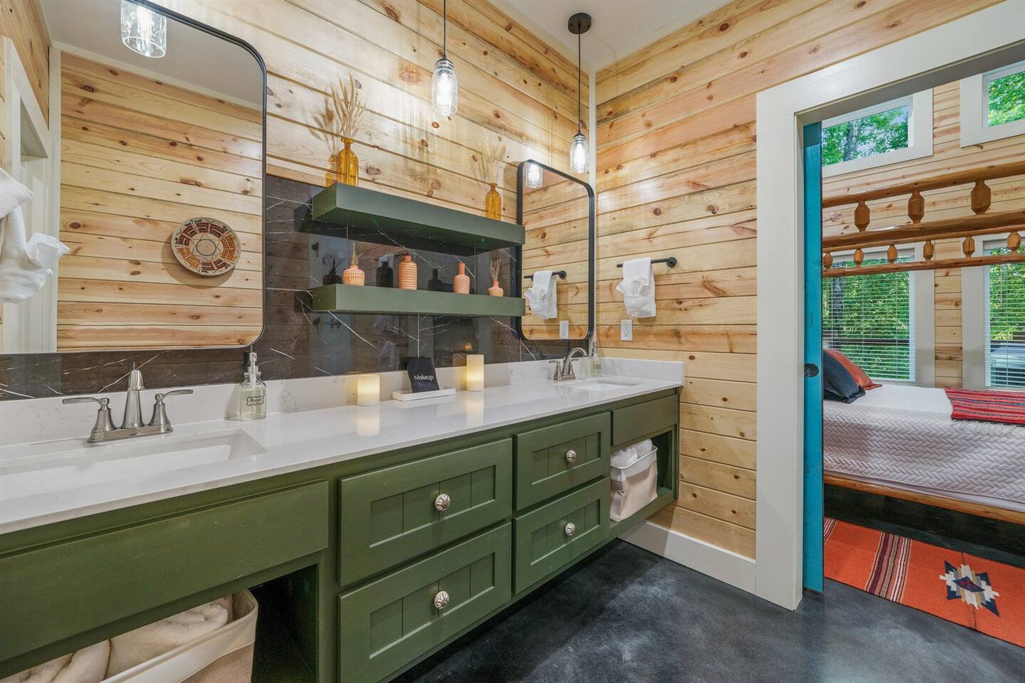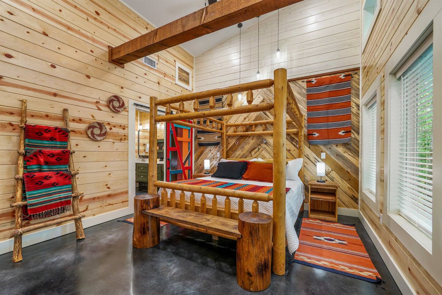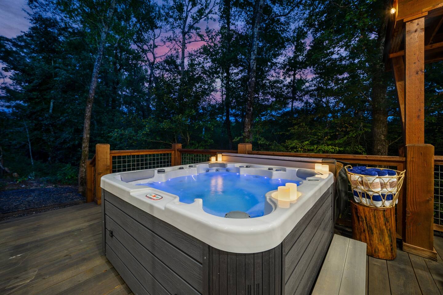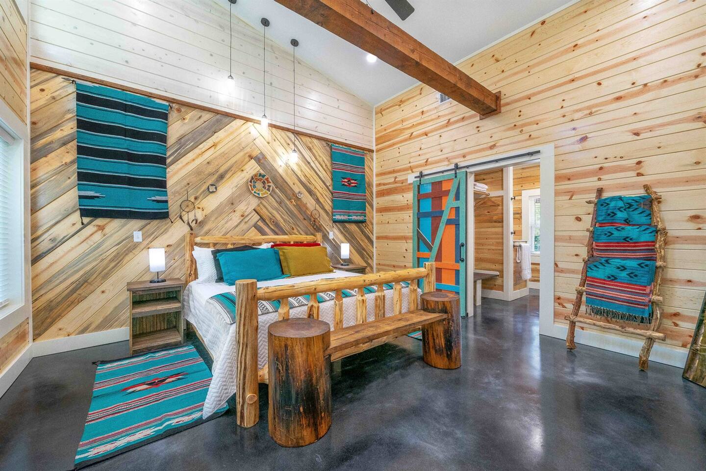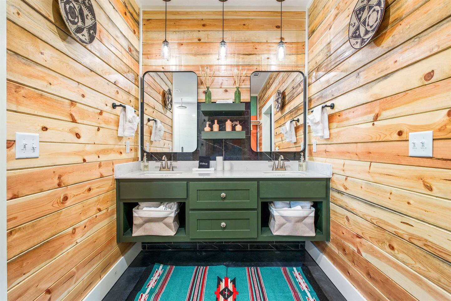 Getting to the Navajo Rug cabin is part of the adventure! You travel from Hwy 259 down cress road. We recommend bringing a vehicle like a pickup or an SUV that has at least 7" clearance, definitely not low to the ground. Be sure to find the directions to the cabin in our Guest Experience Hub in your message portal. Navajo Rug - Sleeps 10 Guests and 2 Dogs < 50 lbs. ⭑Primary Bedroom 1:⭑ Sleeps 2 * Private Room/ Spacious King Bed / Romantic Ambiance, Private Ensuite * Luxurious bed linens, extra pillows, and blankets for ultimate comfort * Clothing storage and hangers ⭑Primary Bedroom 2:⭑ Sleeps 2 * Private Room/ Spacious King Bed / Romantic Ambiance, Private Ensuite * Luxurious bed linens, extra pillows, and blankets for ultimate comfort * Clothing storage and hangers ⭑Living Room:⭑ Sleeps 2 * Full-size Sofa Sleeper * Cozy living space with a 65-inch HDTV stream your favorite service * See-thru Natural Gas indoor Fireplace for a warm, intimate setting *Loft* Sleeps 4 * Two queen-sized Murphy Beds * Pack-n-Play portable crib * Board Games/ Foosball * Balcony overlooking the creek ⭑Kitchen and Dining Area:⭑ * Fully equipped kitchen with a Samsung gas Cooktop and fridge, built-in wall oven, built-in wall microwave, and dishwasher * Combo Keurig/ Carafe Coffee Machine, Mugs & Wine Glasses * Extensive Cookware, Dinnerware and Utensils to serve up to 10 people and more ⭑Common Bathroom/ Laundry:⭑ * Spacious bathroom with a bathtub * Full-size front-loading stackable Washer / Dryer * Essentials like towels, bed sheets, soap, and toilet paper provided ⭑Outdoor Space:⭑ * Private patio Fire pit and outdoor furniture * Hot tub spa available all year for a soothing experience * Outdoor Kitchen and BBQ Grill and Dining Table/ Serving Bar overlooking the creek * Custom Playground built from logs harvested on the property * Circle Drive w/ Portico (drive-thru carport) ⭑Additional Amenities:⭑ * Board games and family-friendly items like a pack-n-play ⭑Safety and Security:⭑ * Exterior security cameras for peace of mind * Smoke alarm, carbon monoxide alarm, and first aid kit provided, Grease Fire Blanket and fire Extinguishers at Kitchen and Outdoor Grill ⭑Entertainment and Connectivity:⭑ * High-speed WiFi and dedicated workspace ⭑Heating and Cooling:⭑ * Central air conditioning and heating * Ceiling fans in all living spaces for additional comfort ⭑Parking and Facilities:⭑ * Free driveway parking on premises for up to 6 vehicles * Two-level home with stairs accessing the gaming loft ⭑Services and Experiences⭑ * NEW: Add-on services available - From a romantic dinner prepared by a private chef to a local in-cabin massage therapy * Short distance from trails, wineries, and Hochatown's new Airbnb Experiences * Schlage Encode Keypad Self check-in for convenience Your stay at The Navajo Rug Cabin promises unforgettable Luxury, modern convenience, and fun for all ages rain or shine. Book now and let the memories begin! Booking with Tree Frog Getaways means securing more than just a place to stay. You’re choosing a five-star experience managed by one of the top-performing management teams in the industry. Some of our cabins rank among the top 5% on Airbnb. All of our cabins are ranked among guest favorites that are celebrated for their thoughtful details, premium amenities, and spotless presentation. Availability is limited, so reserve your dates today.