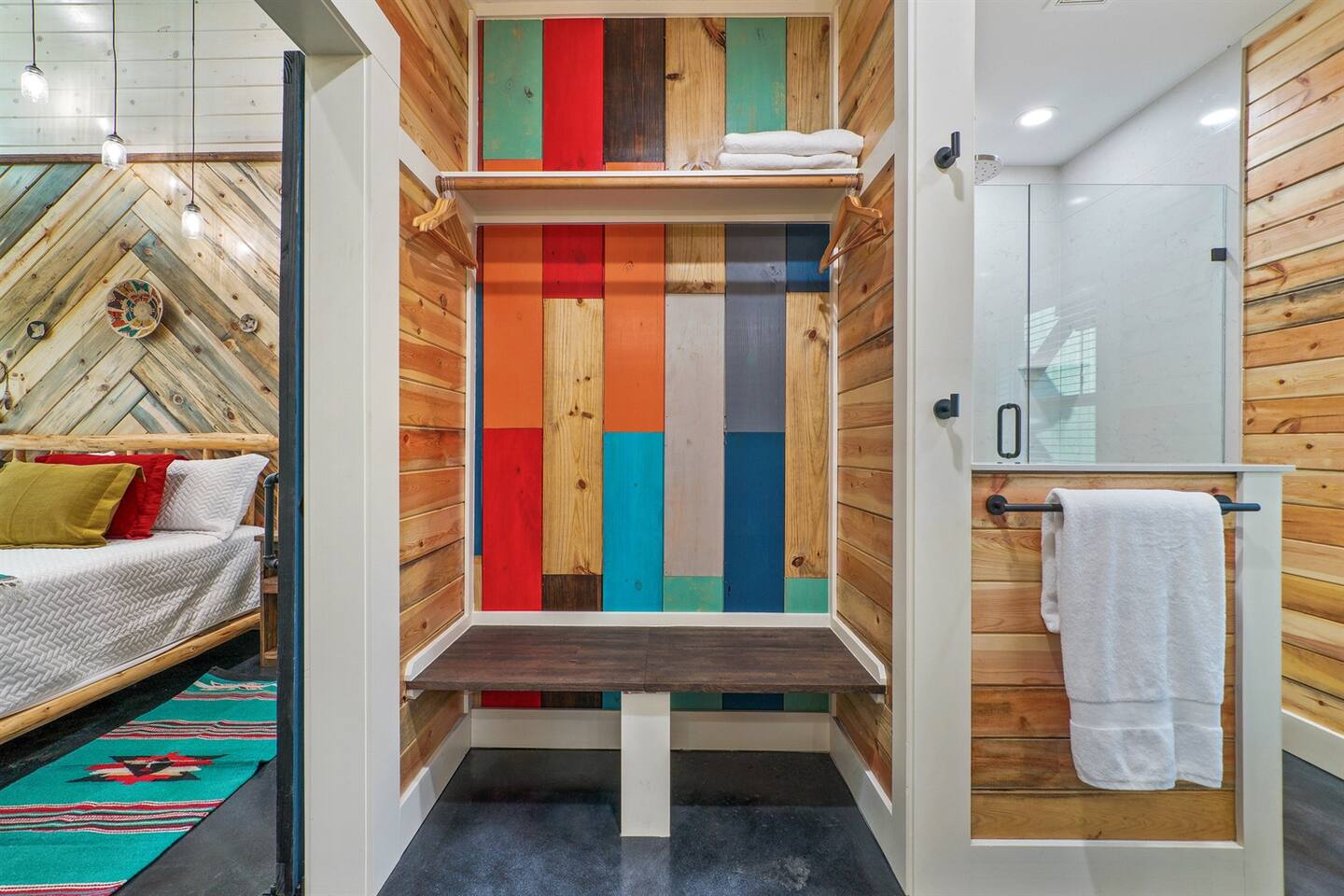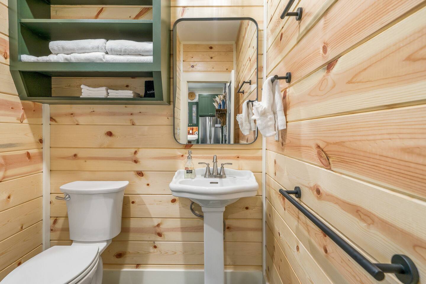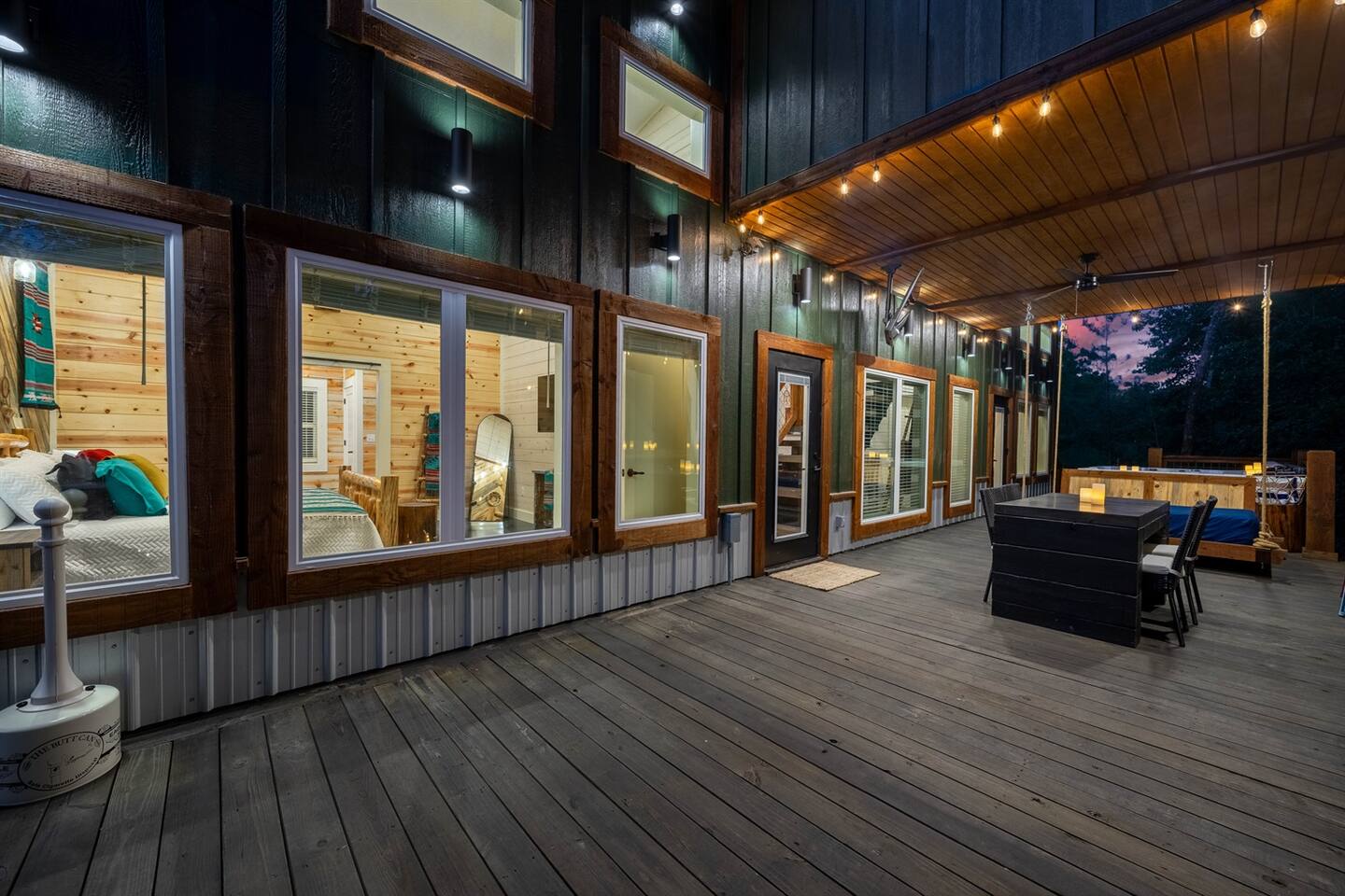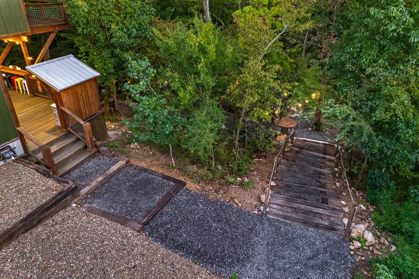Getting to the Navajo Rug cabin is part of the adventure! You travel from Hwy 259 down cress road. We recommend bringing a vehicle like a pickup or an SUV that has at least 7" clearance, definitely not low to the ground. Be sure to find the directions to the cabin in our Guest Experience Hub in your message portal. Navajo Rug - Sleeps 10 Guests and 2 Dogs < 50 lbs. ⭑Primary Bedroom 1:⭑ Sleeps 2 * Private Room/ Spacious King Bed / Romantic Ambiance, Private Ensuite * Luxurious bed linens, extra pillows, and blankets for ultimate comfort * Clothing storage and hangers ⭑Primary Bedroom 2:⭑ Sleeps 2 * Private Room/ Spacious King Bed / Romantic Ambiance, Private Ensuite * Luxurious bed linens, extra pillows, and blankets for ultimate comfort * Clothing storage and hangers ⭑Living Room:⭑ Sleeps 2 * Full-size Sofa Sleeper * Cozy living space with a 65-inch HDTV stream your favorite service * See-thru Natural Gas indoor Fireplace for a warm, intimate setting *Loft* Sleeps 4 * Two queen-sized Murphy Beds * Pack-n-Play portable crib * Board Games/ Foosball * Balcony overlooking the creek ⭑Kitchen and Dining Area:⭑ * Fully equipped kitchen with a Samsung gas Cooktop and fridge, built-in wall oven, built-in wall microwave, and dishwasher * Combo Keurig/ Carafe Coffee Machine, Mugs & Wine Glasses * Extensive Cookware, Dinnerware and Utensils to serve up to 10 people and more ⭑Common Bathroom/ Laundry:⭑ * Spacious bathroom with a bathtub * Full-size front-loading stackable Washer / Dryer * Essentials like towels, bed sheets, soap, and toilet paper provided ⭑Outdoor Space:⭑ * Private patio Fire pit and outdoor furniture * Hot tub spa available all year for a soothing experience * Outdoor Kitchen and BBQ Grill and Dining Table/ Serving Bar overlooking the creek * Custom Playground built from logs harvested on the property * Circle Drive w/ Portico (drive-thru carport) ⭑Additional Amenities:⭑ * Board games and family-friendly items like a pack-n-play ⭑Safety and Security:⭑ * Exterior security cameras for peace of mind * Smoke alarm, carbon monoxide alarm, and first aid kit provided, Grease Fire Blanket and fire Extinguishers at Kitchen and Outdoor Grill ⭑Entertainment and Connectivity:⭑ * High-speed WiFi and dedicated workspace ⭑Heating and Cooling:⭑ * Central air conditioning and heating * Ceiling fans in all living spaces for additional comfort ⭑Parking and Facilities:⭑ * Free driveway parking on premises for up to 6 vehicles * Two-level home with stairs accessing the gaming loft ⭑Services and Experiences⭑ * NEW: Add-on services available - From a romantic dinner prepared by a private chef to a local in-cabin massage therapy * Short distance from trails, wineries, and Hochatown's new Airbnb Experiences * Schlage Encode Keypad Self check-in for convenience Your stay at The Navajo Rug Cabin promises unforgettable Luxury, modern convenience, and fun for all ages rain or shine. Book now and let the memories begin! Booking with Tree Frog Getaways means securing more than just a place to stay. You’re choosing a five-star experience managed by one of the top-performing management teams in the industry. Some of our cabins rank among the top 5% on Airbnb. All of our cabins are ranked among guest favorites that are celebrated for their thoughtful details, premium amenities, and spotless presentation. Availability is limited, so reserve your dates today.